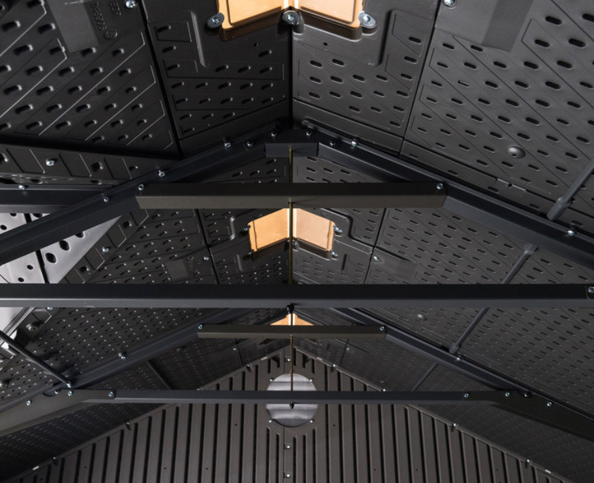 The four skylights allow for ample amounts of light in the interior of the shed. From the molded wood-grain panels to the simulated shingled roof, you are sure to enjoy this attractive design while getting all the utility and durability of a Lifetime Shed.